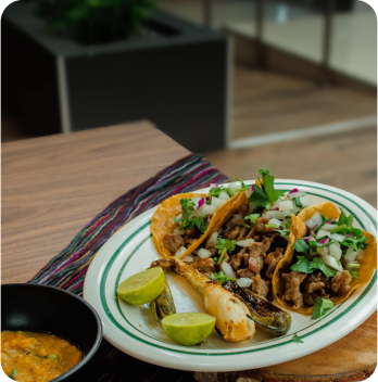 Sabrosos tacos con el reconocido sabor de Tacos el cuervo, los mejores tacos de tripitas, carne asada, alambre, pastor y muchos más. Acompáñalos con papa asada, queso fundido o frijoles charros.