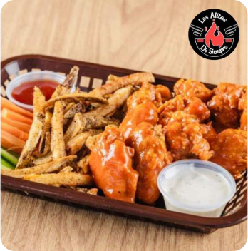 Deliciosas alitas y boneless sazonadas con una gran variedad de salsas, acompañadas de papas preparadas. Promociones diarias de lunes a jueves.