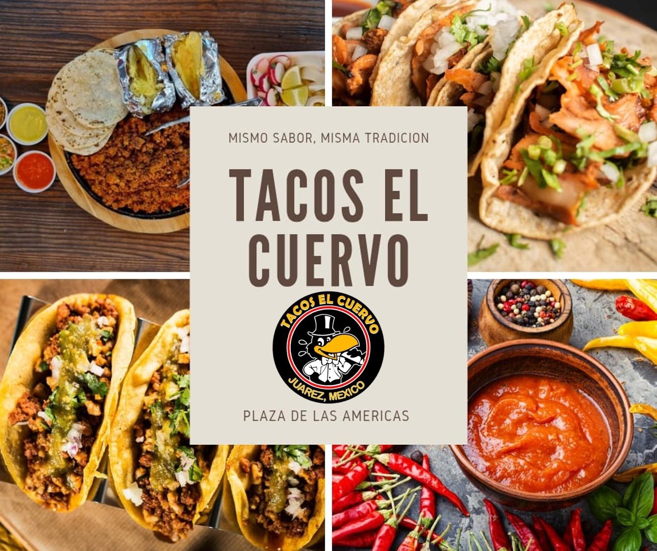 Sabrosos tacos con el reconocido sabor de Tacos El Cuervo, los mejores tacos de tripitas, carne asada, alambre, pastor y muchos más. Acompáñalos con papa asada o frijoles charros.